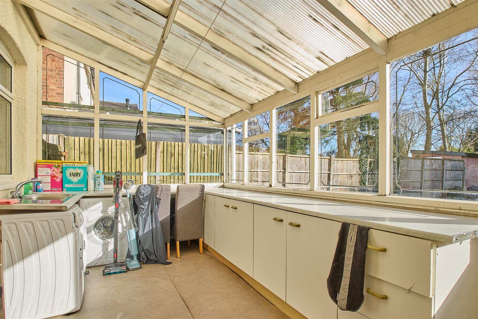 single glazed with single drainer stainless steel sink unit with mixer taps above. Range of floor mounted storage cupboards in white and three drawer unit. Contrasting roll edge working surfaces above. Appliance recess points. Plumbing for automatic washing machine. Door to separate WC with white low level WC. Further brick built store room with power point. Wood panelled and glazed door to rear garden.