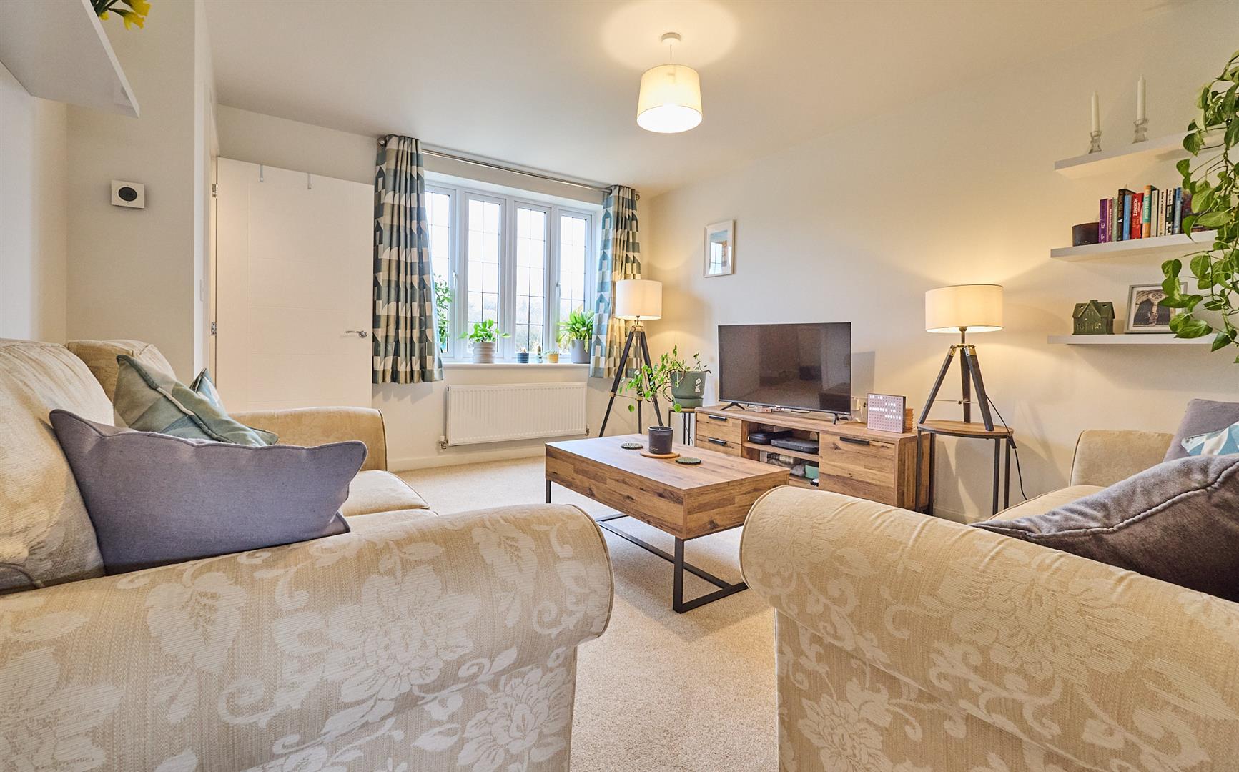 With a radiator, TV aerial point, thermostat for the central heating system, door to under stairs storage cupboard housing the fuse box and white panelled interior door to