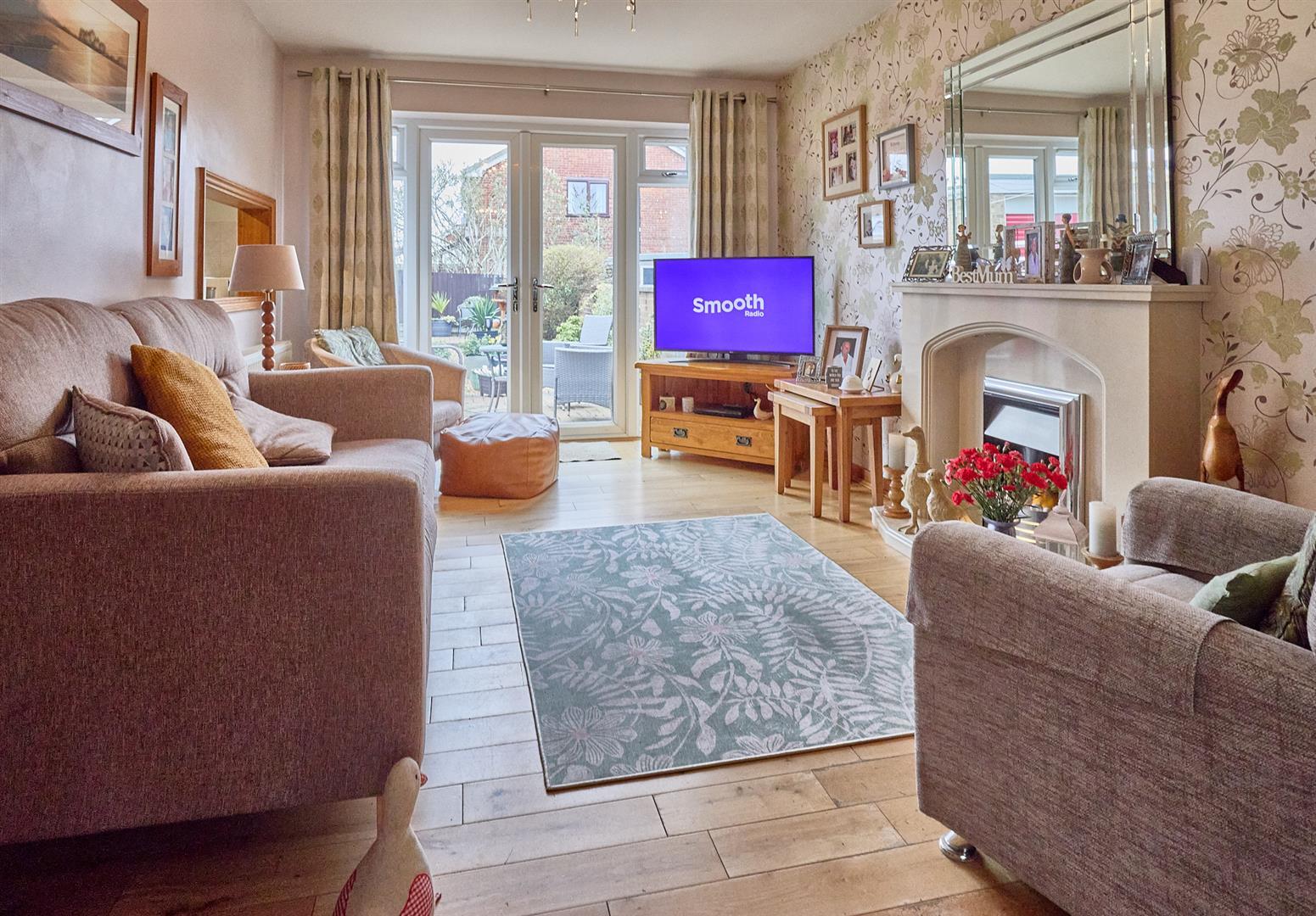 The lounge area to rear with a feature contemporary marble fireplace incorporating a living flame pebble effect electric fire, double panel radiator, oak strip flooring, TV aerial point. UPVC SUDG french doors lead to the rear garden. The dining area to front with oak strip flooring, double panel radiator, UPVC SUDG bay window to front, stair way to first floor with pine balustrades.
