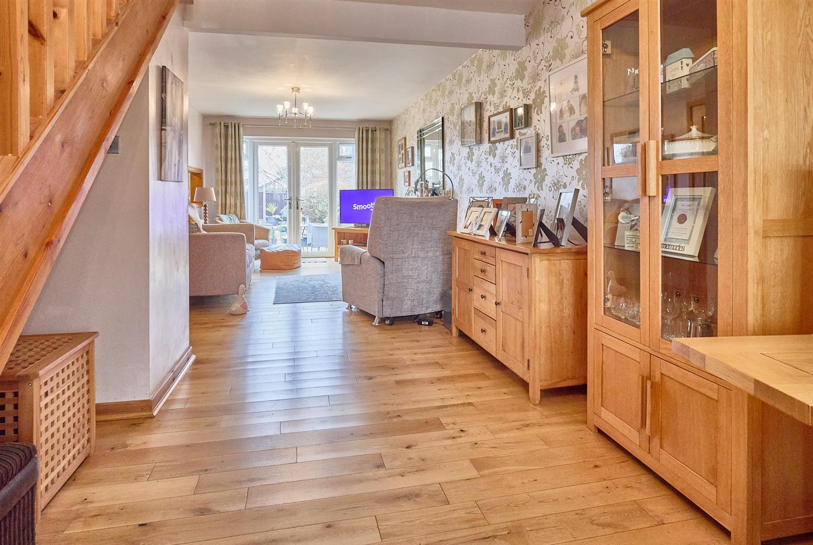 With oak strip flooring, fitted meter cupboard, radiator, wired in smoke alarm, digital thermostat for the central heating system door to a cloaks cupboard housing the wall mounted Worcester gas condensing combination boiler for the central heating and domestic hot water, further built in storage cupboard with fitted shelving.