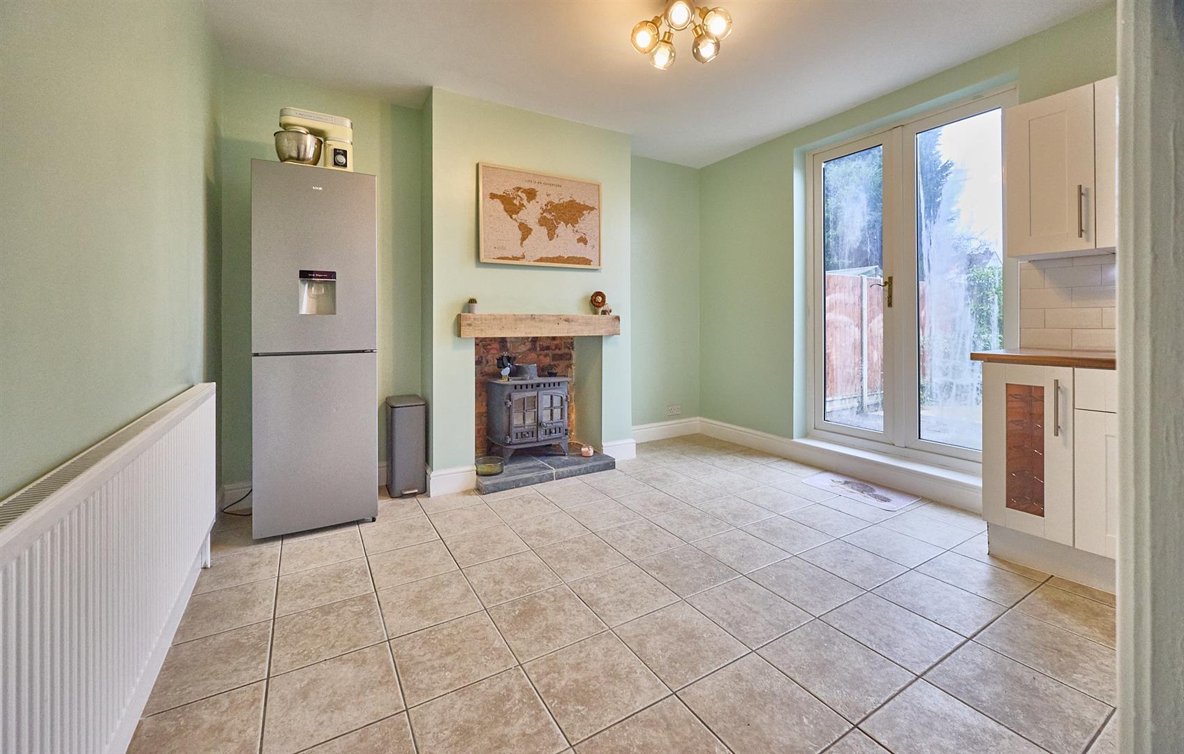 The living dining area with feature fireplace having raised slate hearth solid oak beam above incorporating a black cast iron multi stove (currently not connected) but included, ceramic tiled flooring, radiator, UPVC SUDG french doors lead to the rear garden. The kitchen with a range of matt white fitted kitchen units consisting inset one and a half bowl single drainer stainless steel sink, mixer tap above, cupboard beneath. Further matching range of floor mounted cupboard units and drawers, wine rack, contrasting walnut finished roll edge working surfaces above with concealed lighting and USB points. Inset four ring NEF induction hob unit, stainless steel chimney extractor above, white tiled splashbacks, further matching range of wall mounted cupboard units, integrated dishwasher. NEF double fan assisted oven with grill, ceramic tiled flooring, inset ceiling spotlights. A feature archway leads to a utility area with plumbing for automatic washing machine, ceramic tiled flooring, double panel radiator. The rear lobby with ceramic tiled flooring, UPVC SUDG and colour leaded door leading to the side of the property. Door to