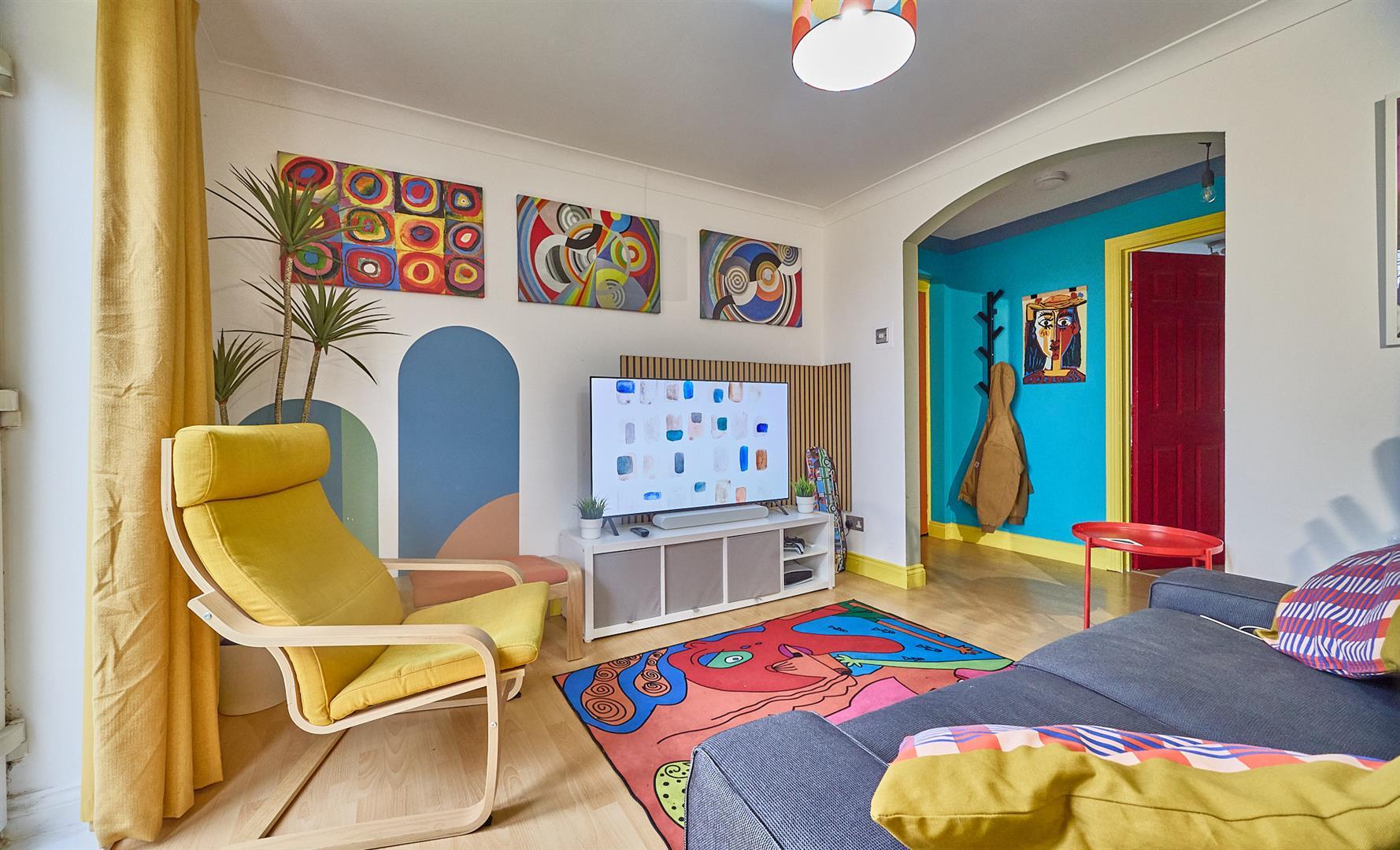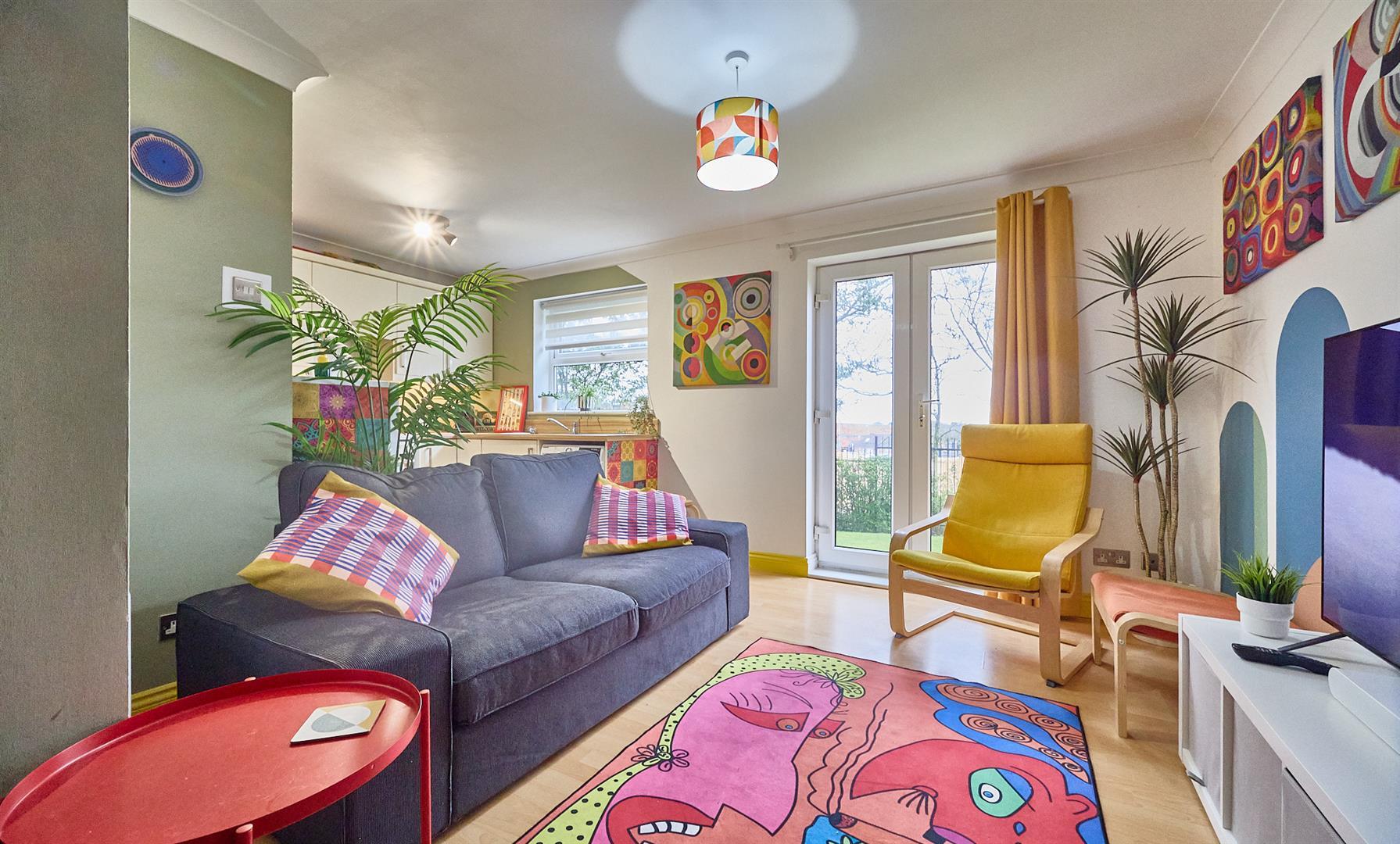 The living area: With electric heater, TV aerial point, UPVC SUDG french doors to the communal garden.