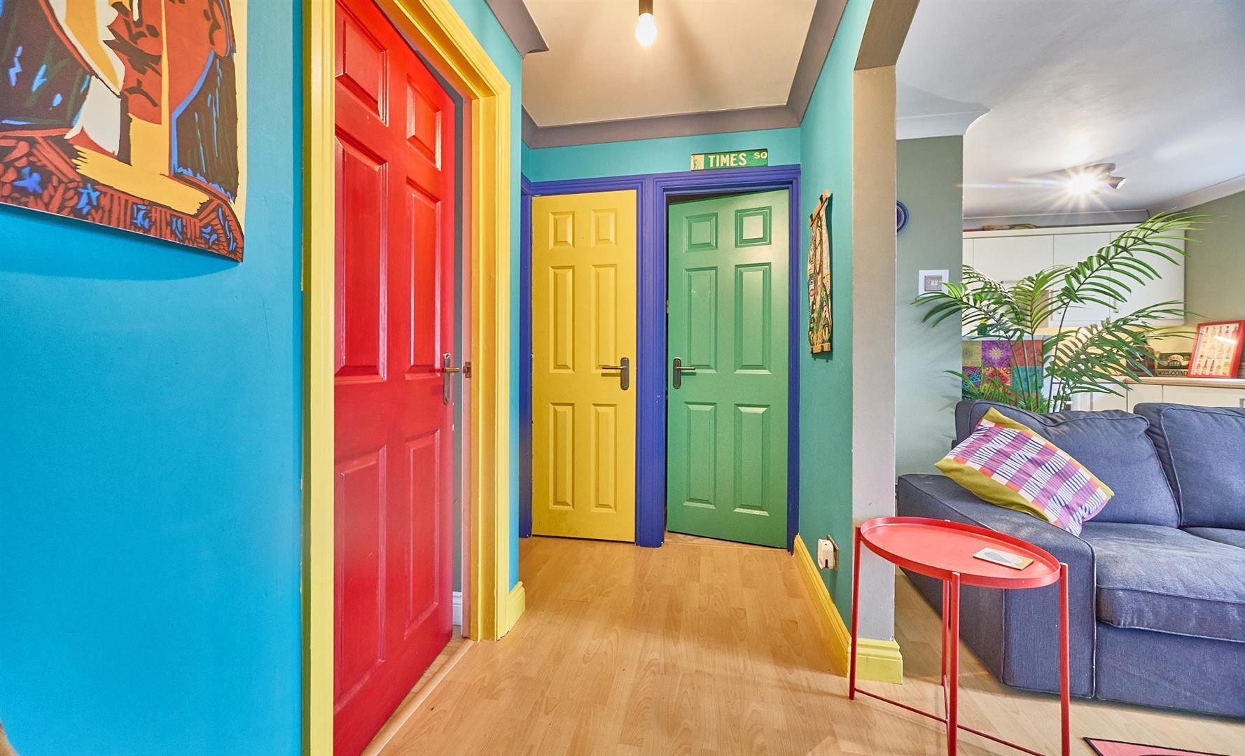 With consumer unit, smoke alarm and archway to