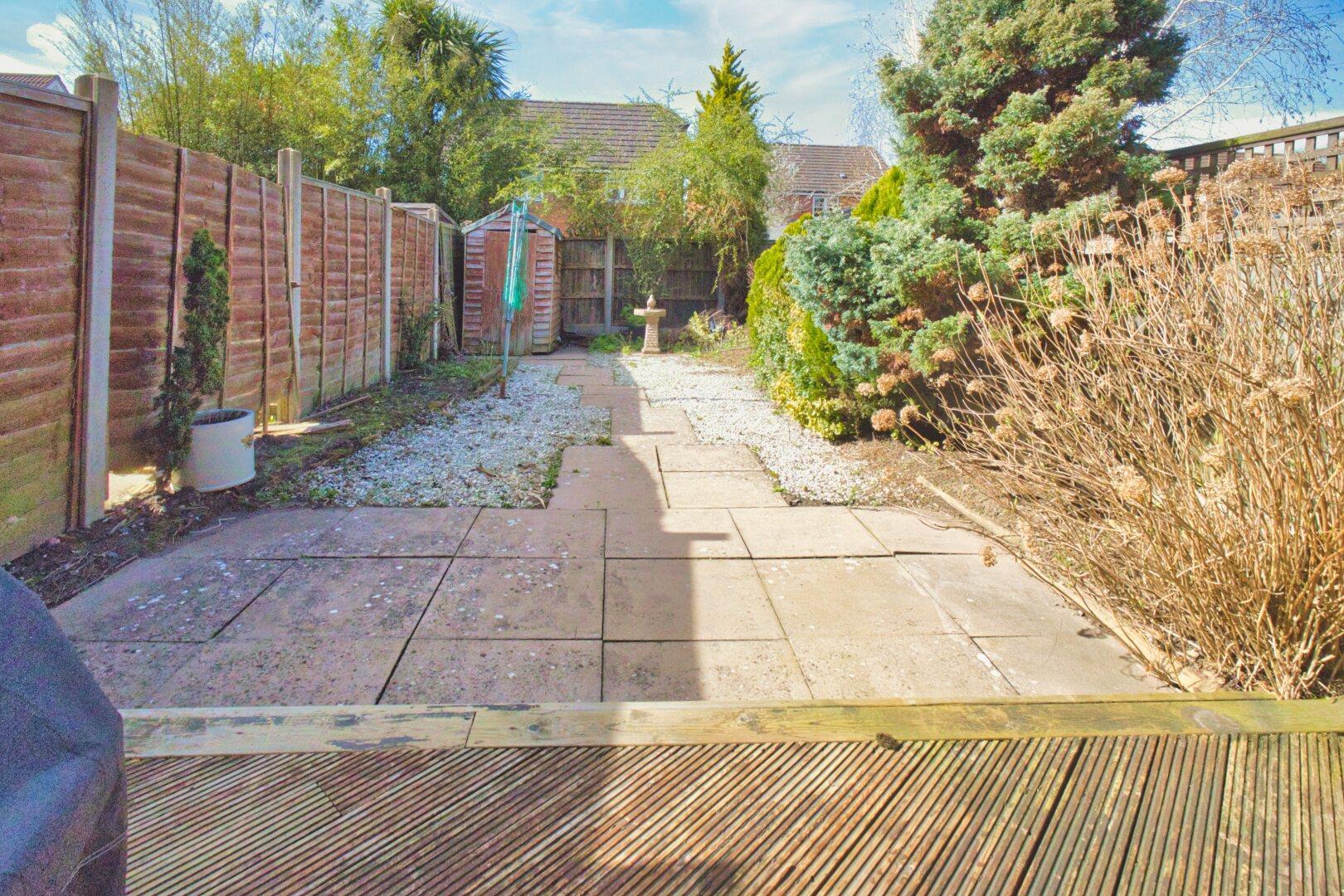The property is set back from the road having a full width tarmacadam and slate chipping driveway to front offering ample car parking. There is also a bin store. There is a fully fenced and enclosed rear garden which has been principally hard landscaped having a full width timber decking and slabbed patio adjacent to the rear of the property beyond which the garden is in decorative stone with central slabbed pathway and surrounding beds, timber shed to the top of the garden. Outside light and tap and the garden has a sunny aspect.