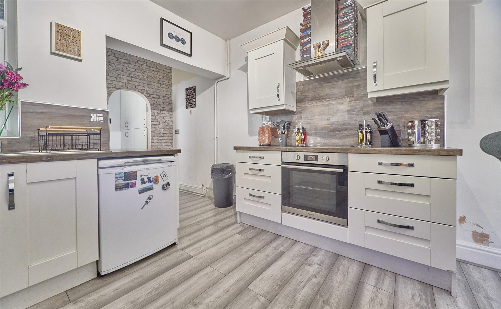 With wall mounted cupboard units and UPVC SUDG door to the rear garden. Door to