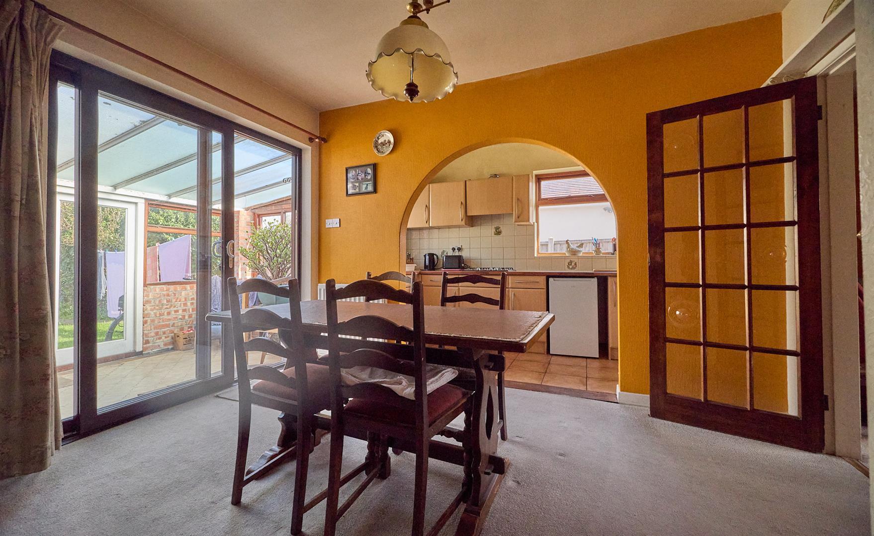 With two double panelled radiators, wooden and glazed door to the lounge and a UPVC SUDG sliding door to the conservatory. Archway to the
