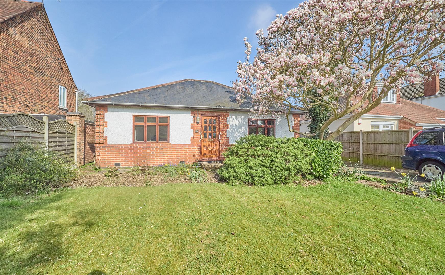 Impressive detached bungalow situated on a substantial plot of approximately 0.5 acres! Highly sought after and convenient non estate location within walking distance of the village centre, including shops, schools, doctors, dentists, restaurants, public houses and easy access to the A5 and M69 motorway. The property benefits from gas central heating, tiled flooring, re fitted bathroom and feature fireplace with Cornish Slate. Accommodation offers entrance hallway, lounge, dining kitchen and conservatory. 3 bedrooms and bathroom. Large front garden enclosed by a Cornish Slate wall and long tarmacadam, slabbed and Cornish slate infill driveway to side. Extensive rear garden with open views and development potential (STPP). Viewing highly recommended. Carpets and light fittings included.