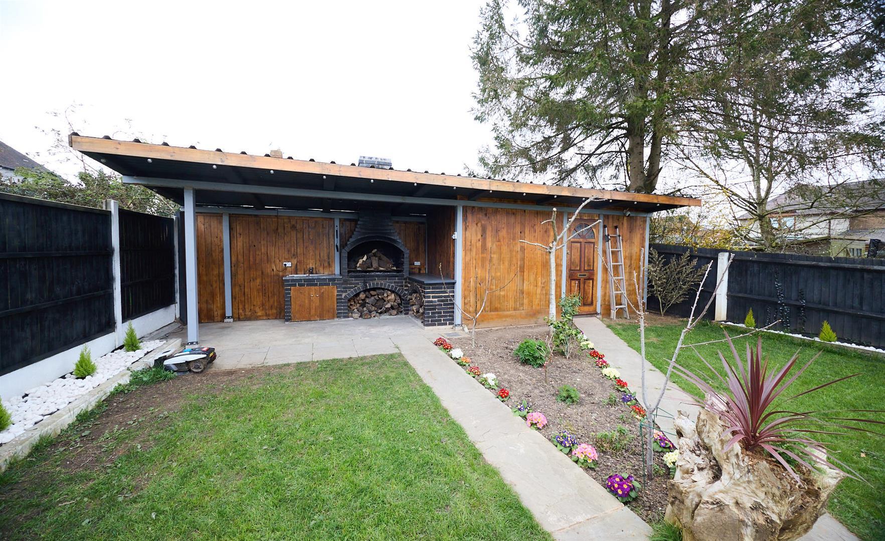 The property is set well back from the road screened behind a mature hedge having a full width driveway to front offering ample car standing with surrounding raised beds. The driveway leads down the side of the property through double timber gates to the rear of the property, there is ample room for a garage (STPP). There is a large fully fenced and enclosed rear garden with a full width pre concrete patio adjacent to the rear of the property where there is lighting and an outside tap. Beyond this the garden is principally laid to lawn with surrounding raised beds, a pathway leads to the top of the garden where there is a covered outside kitchen with light and power, a single drainer stainless steel sink unit, a brick BBQ and log store. A working surface and a large timber shed. The garden has a sunny aspect.