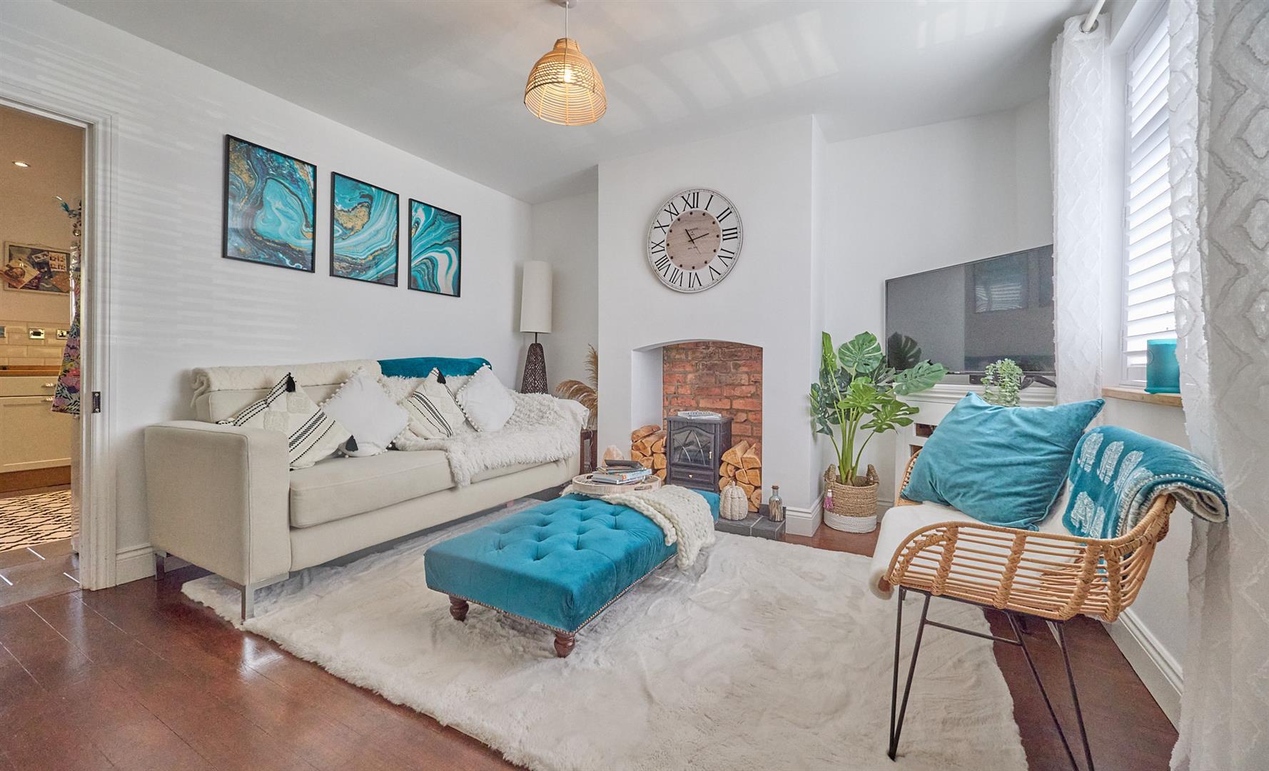 Stunning traditional 2 bedroom terrace property. Popular and convenient location within walking distance of the village centre including shops, schools, doctors surgery, bus services, parks, takeaways, public houses and good access to major road links. Immaculately presented including hardwood flooring, underfloor heating, refitted kitchen and bathroom, gas central heating and UPVC SUDG. Accommodation offers lounge and dining kitchen. 2 bedrooms and bathroom. Front garden laid in stone and good sized rear garden with large garage. Carpets, shutters, cooker and dishwasher included.