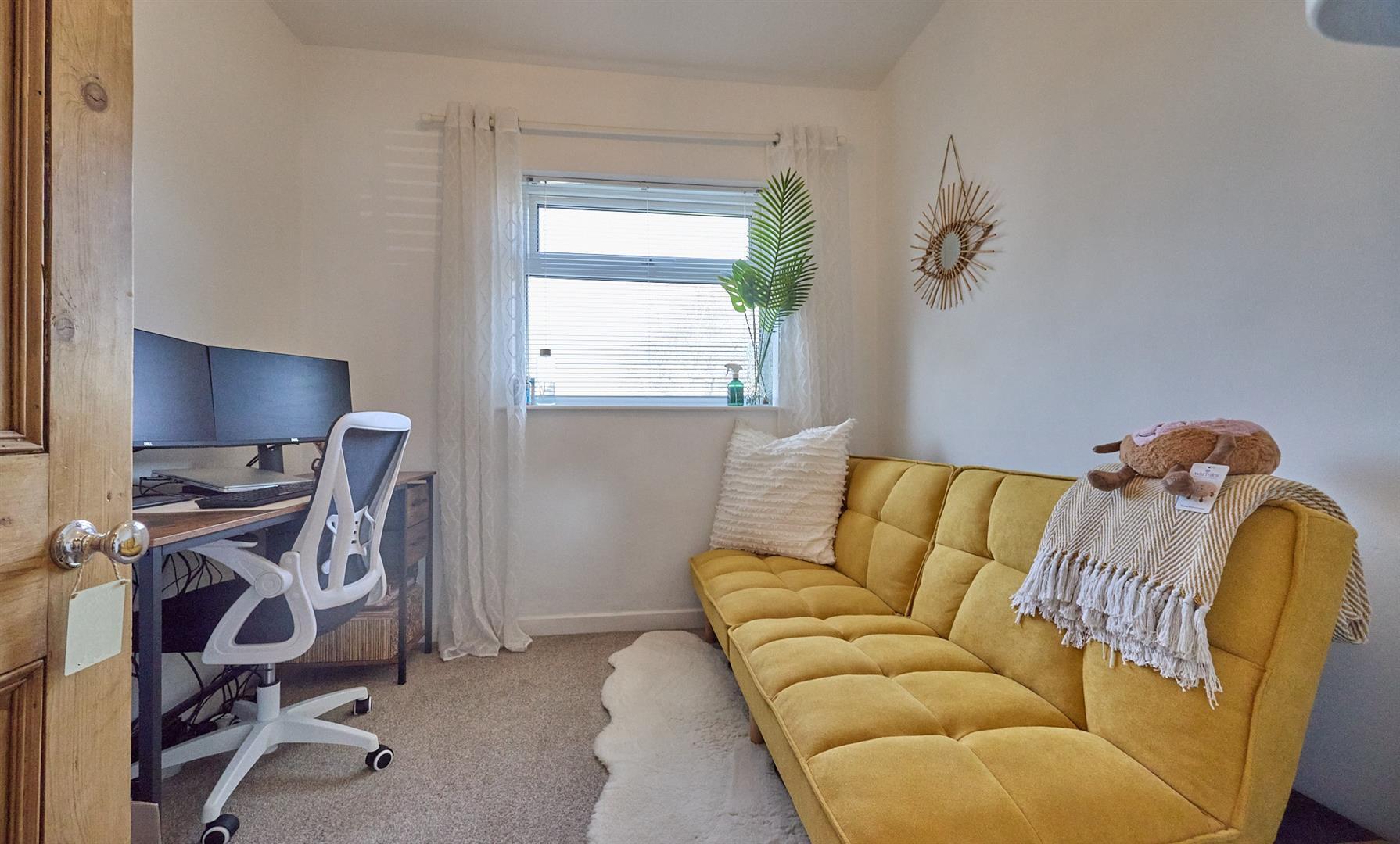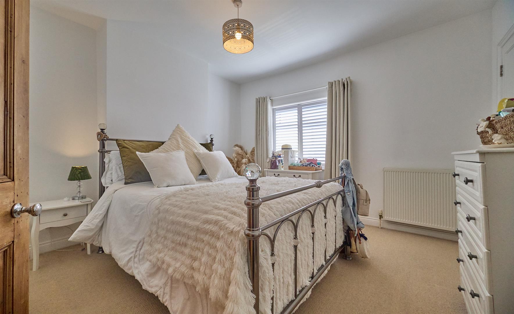 With radiator, shutters to windows and white panelled interior door to a storage cupboard with power.