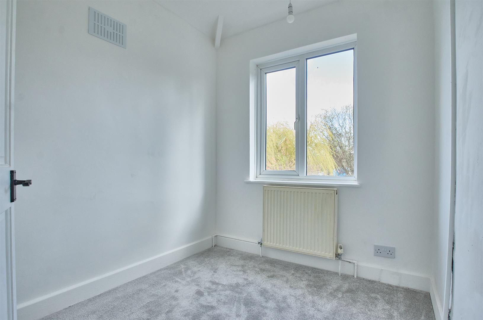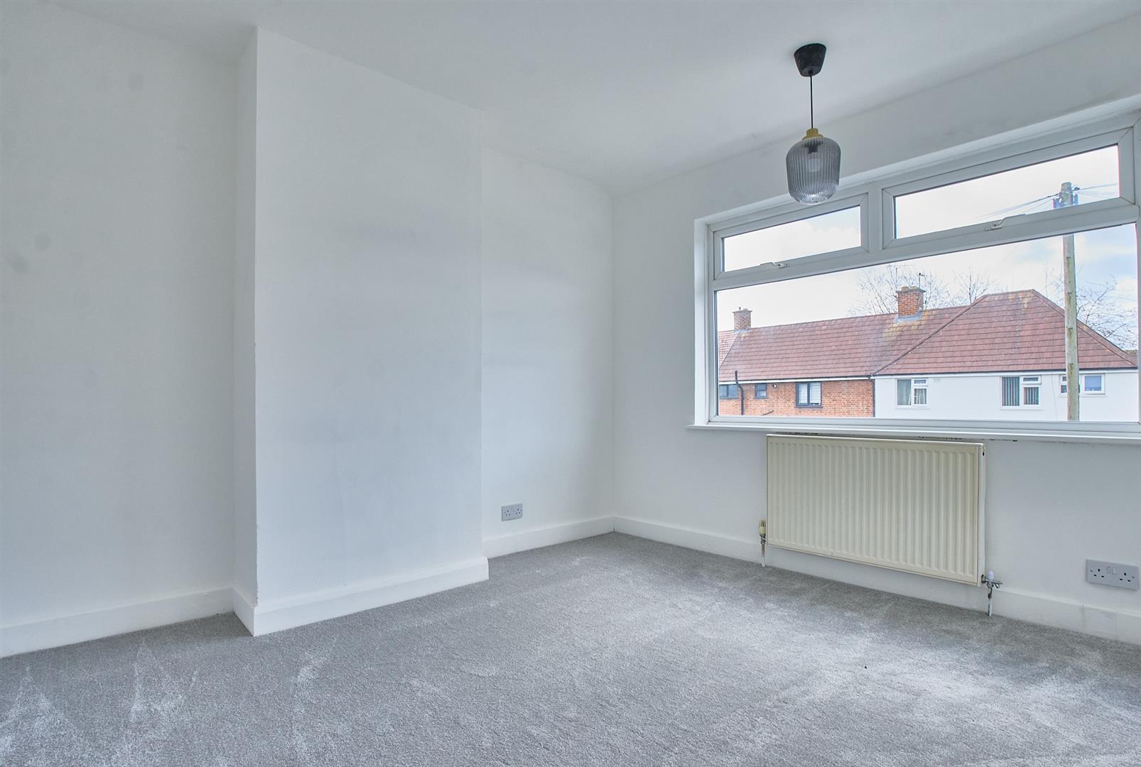 With a single panel radiator, feature fireplace with timber mantle, stone effect backing in hearth incorporating electric fire, smoke alarm, opening to