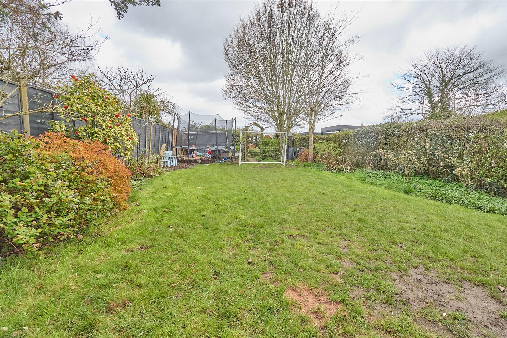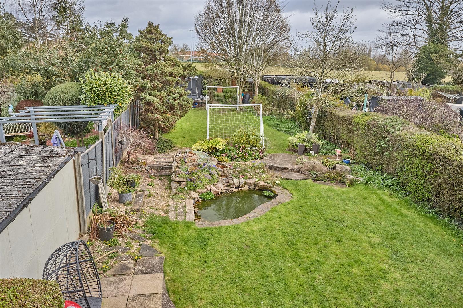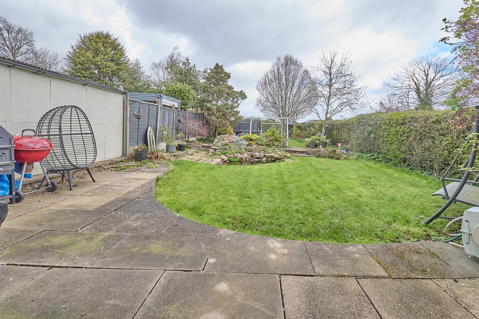 The property is set back from the road having a full width slab driveway to front leading to a single garage (2.41m x 3.69) with white panelled double doors to front with light and power. There is a large mature rear garden enclosed by panel fencing and mature hedging having a full width semi circular slab patio adjacent to the rear of the property, outside tap and lighting, beyond which the garden is principally laid to lawn where there is an ornamental pond and rockery beyond which the garden is principally laid to lawn with well stocked beds and borders and at the top of the garden is a timber shed with power. The garden to the rear has a open aspect overlooking school playing fields.