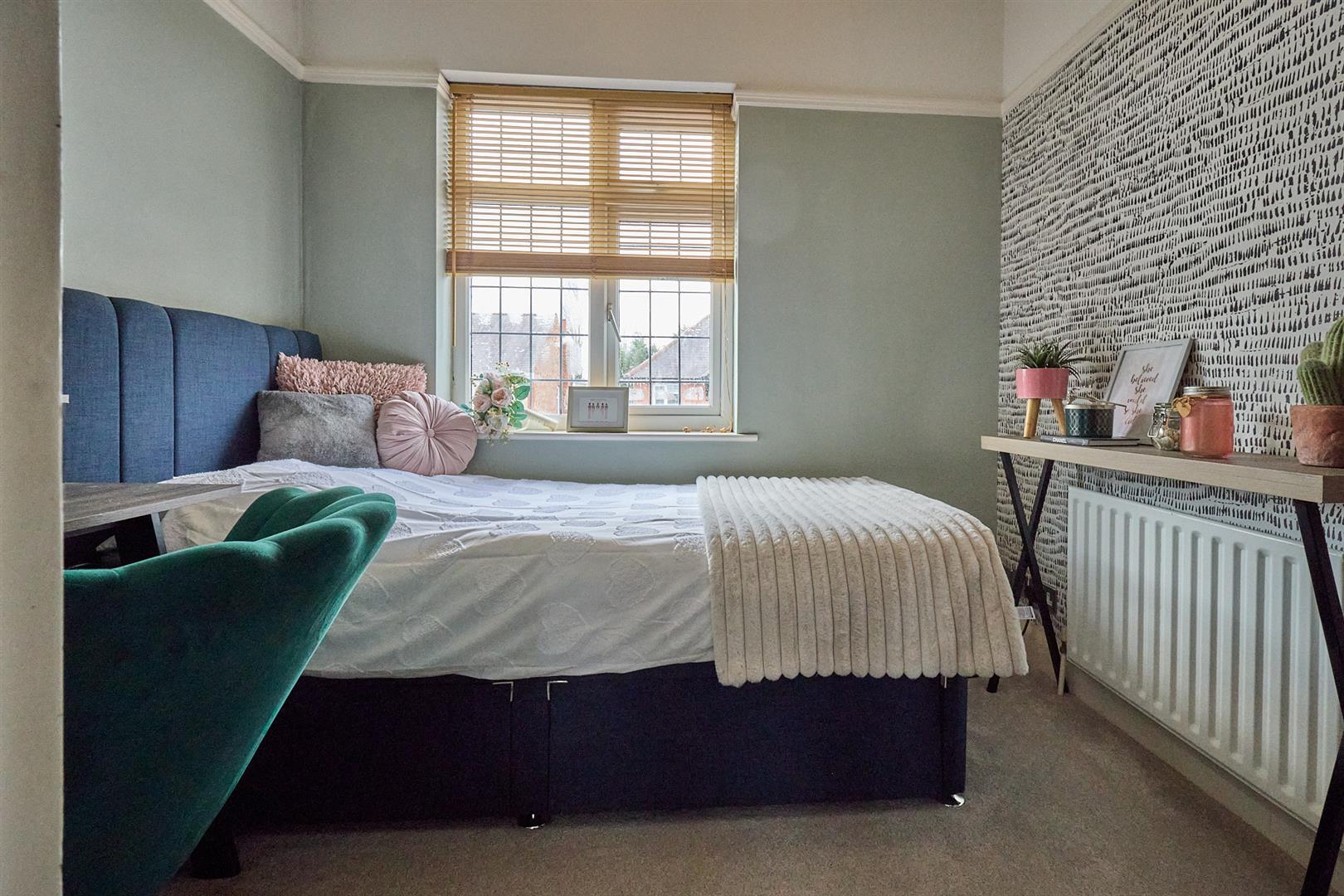 With built in single wardrobe/storage cupboard, single panel radiator, coving to ceiling.