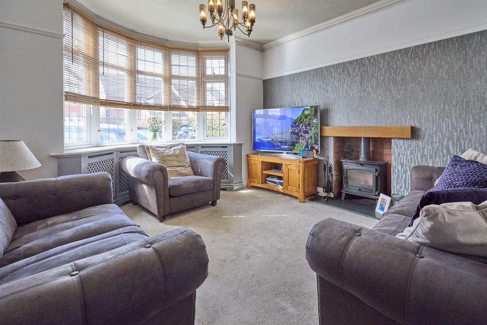 With feature Victorian fireplace having ornamental grey wood surrounds, raised black quarry tile hearth and ornamental cast iron fireplace incorporating living flame coal effect gas fire, grey oak laminate wood strip flooring, radiator with surrounding ornamental radiator cover, coving and ornamental ceiling rose. UPVC SUDG sliding patio doors lead to the rear garden.