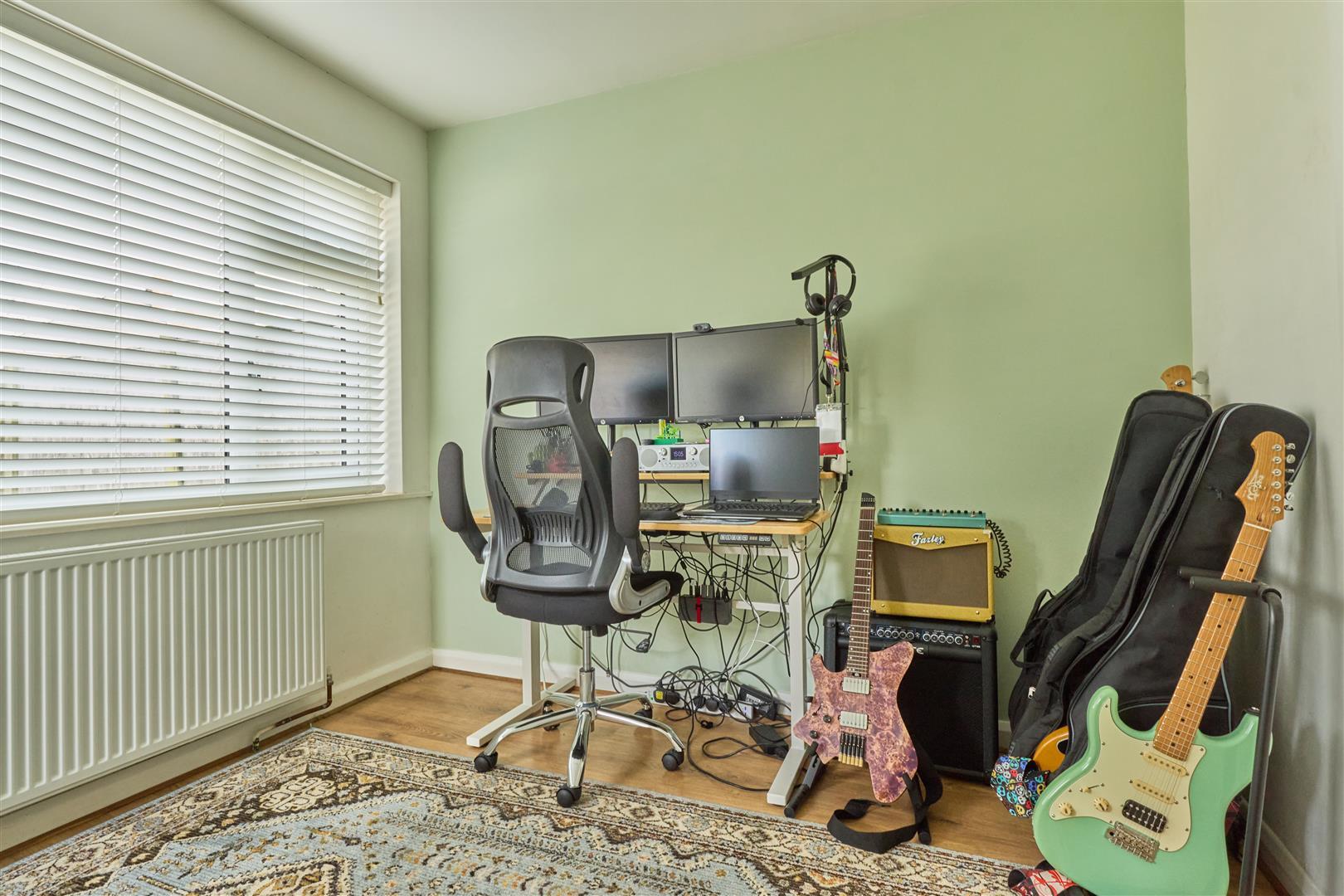 With single panelled radiator, bay window to front. Bespoke wardrobe into the alcove with shelving and hanging rail. Door to