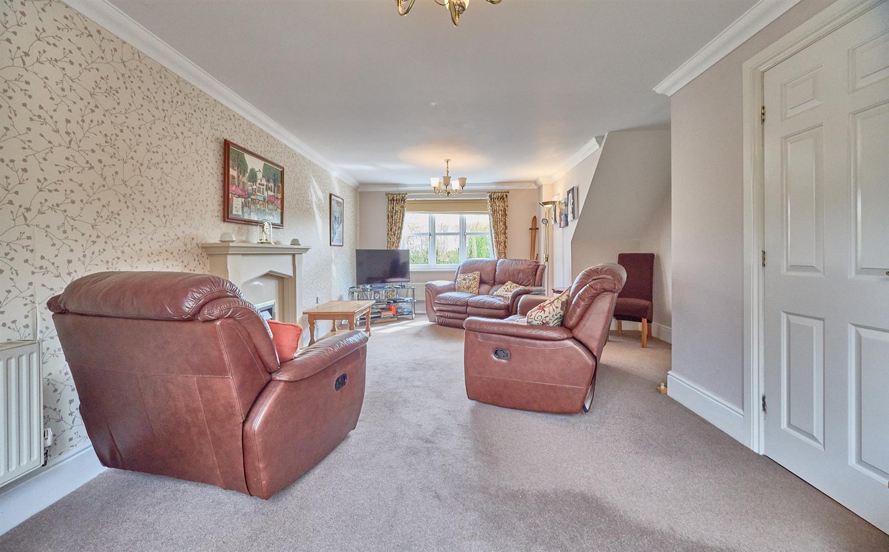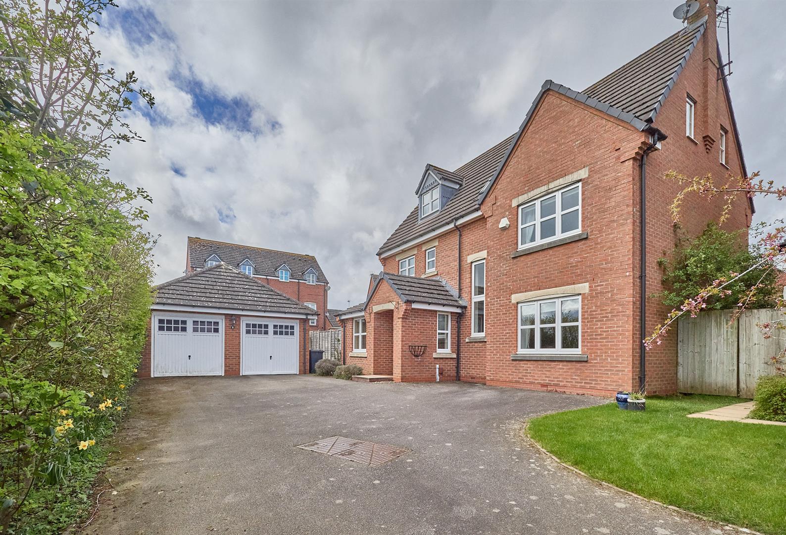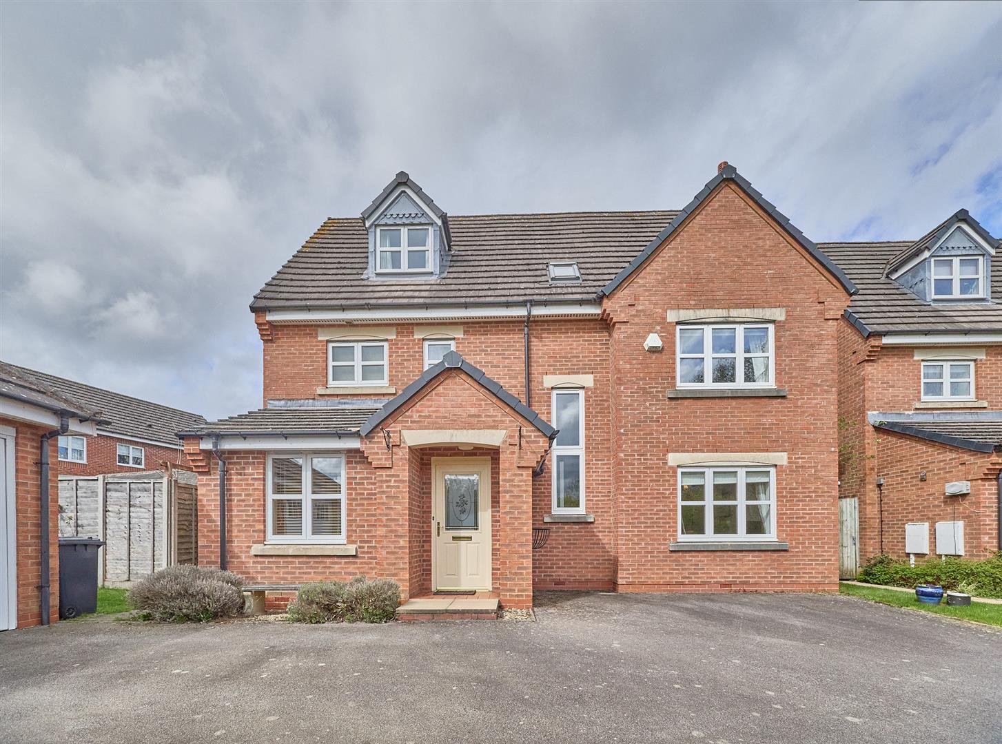 Impressive, extended five bedroom detached family home with double garage and open views to front. Highly sought after and convenient location within walking distance of the village centre including shops, schools, doctors, dentists, public houses, restaurants, and easy access to the A5 and M69 motorway. Immaculately presented and benefiting from feature fireplace, tiled flooring, extended dining room, gas central heating and UPVC SUDG. Spacious accommodation offers entrance hallway, separate WC, study, lounge, dining room, sitting room, kitchen and utility room. Five double bedrooms (two with En suite shower rooms and three with fitted bedroom furniture) and family bathroom with four piece suite. Large driveway to front leading to a double garage and enclosed private rear garden. Carpets, blinds and light fittings included.
