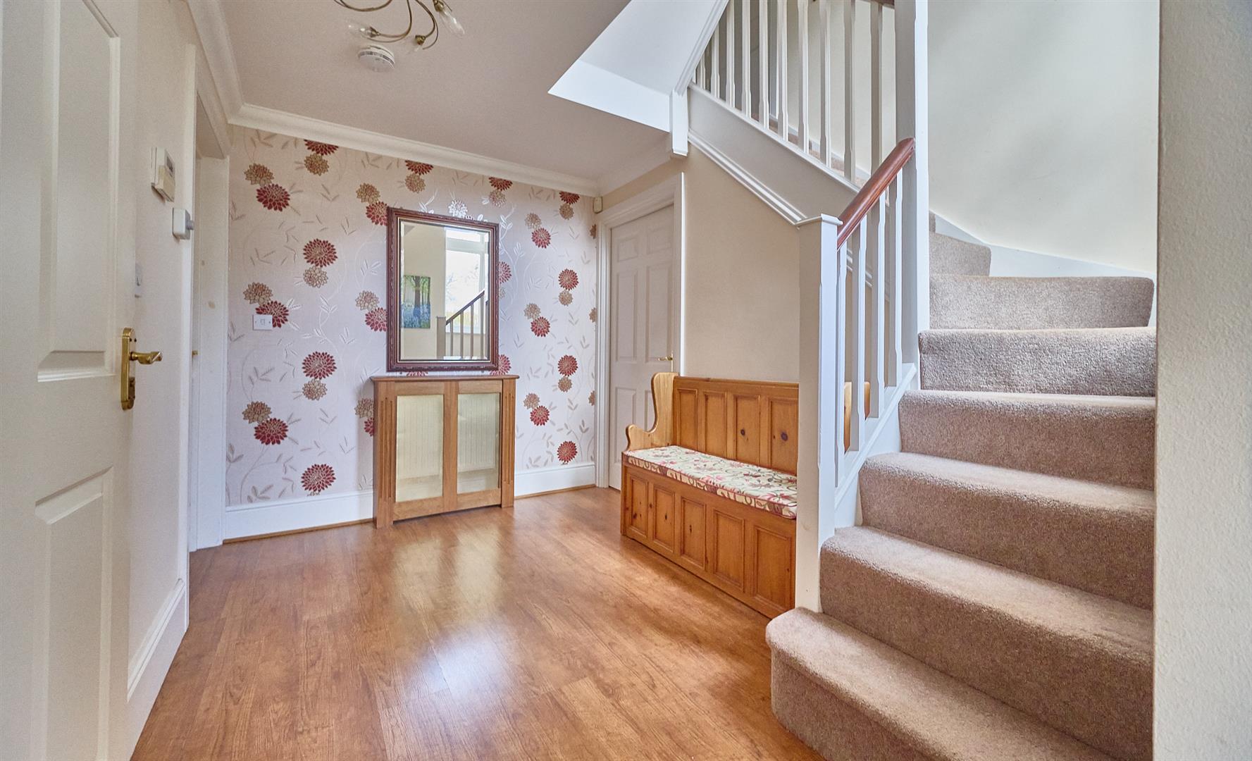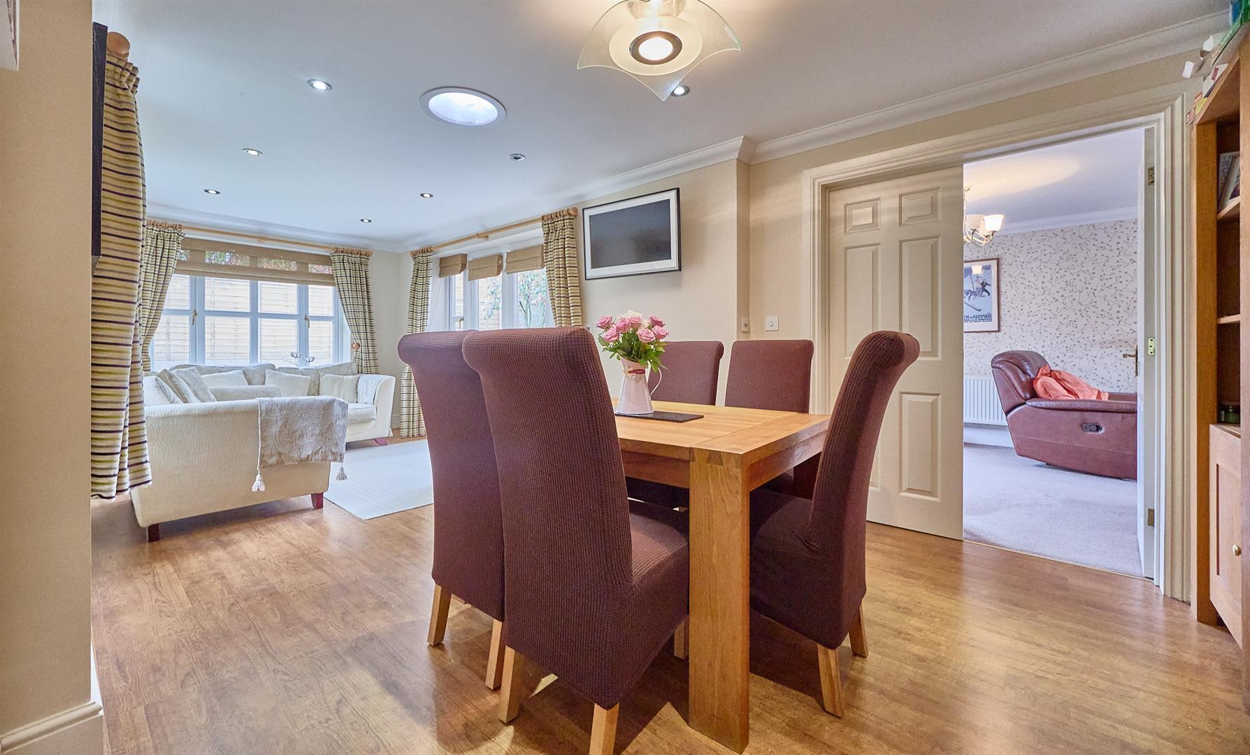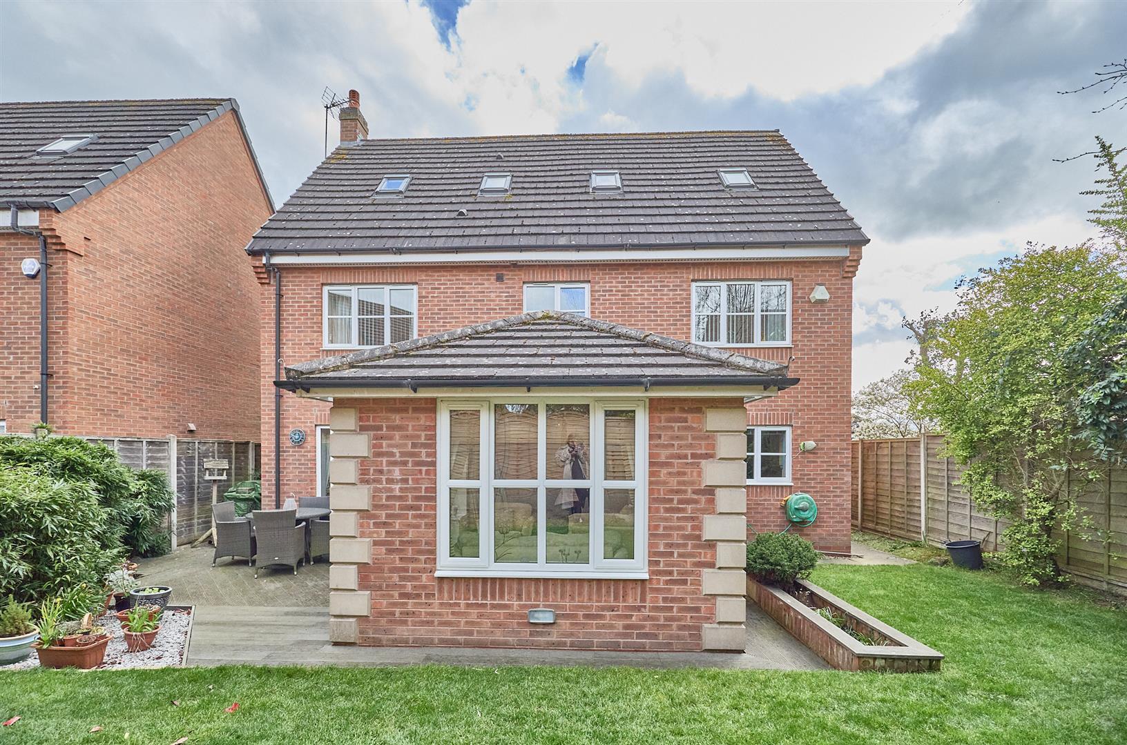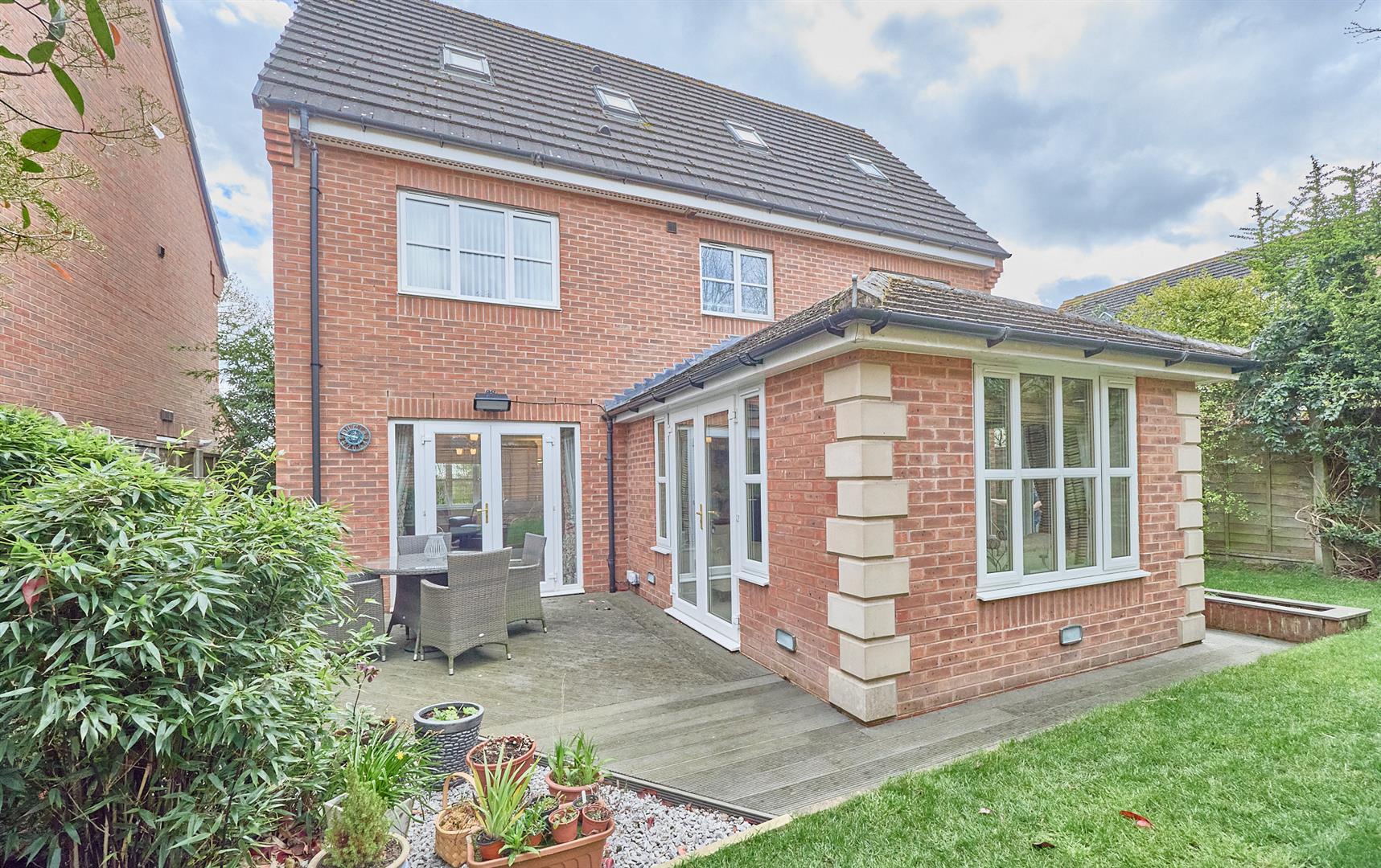 Impressive, extended five bedroom detached family home with double garage and open views to front. Highly sought after and convenient location within walking distance of the village centre including shops, schools, doctors, dentists, public houses, restaurants, and easy access to the A5 and M69 motorway. Immaculately presented and benefiting from feature fireplace, tiled flooring, extended dining room, gas central heating and UPVC SUDG. Spacious accommodation offers entrance hallway, separate WC, study, lounge, dining room, sitting room, kitchen and utility room. Five double bedrooms (two with En suite shower rooms and three with fitted bedroom furniture) and family bathroom with four piece suite. Large driveway to front leading to a double garage and enclosed private rear garden. Carpets, blinds and light fittings included.