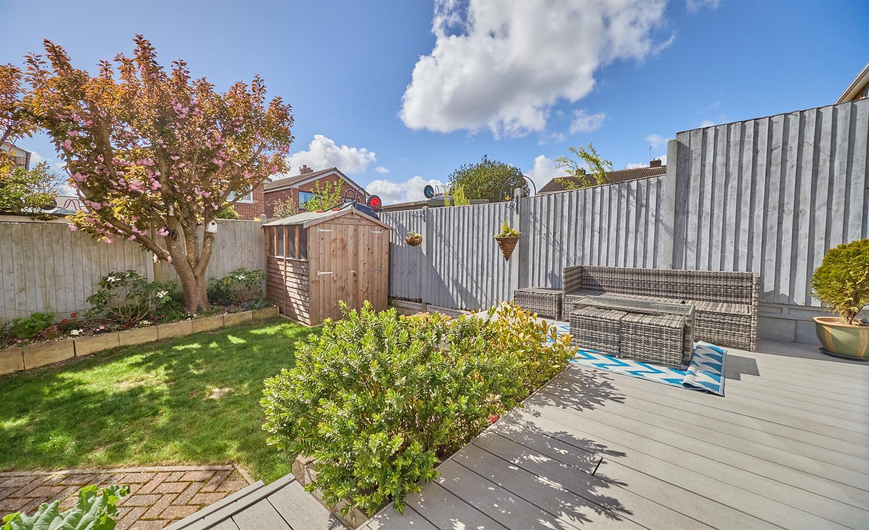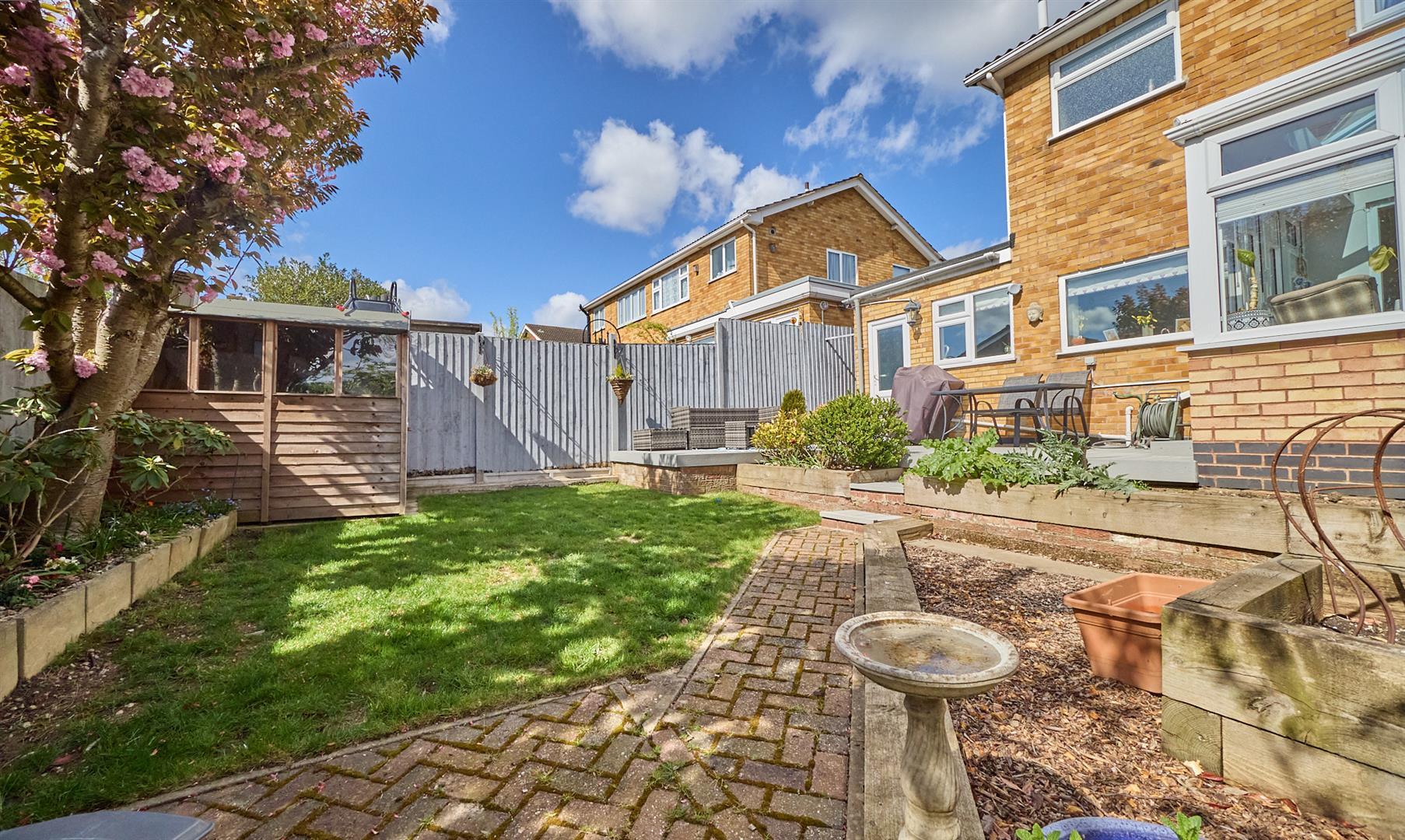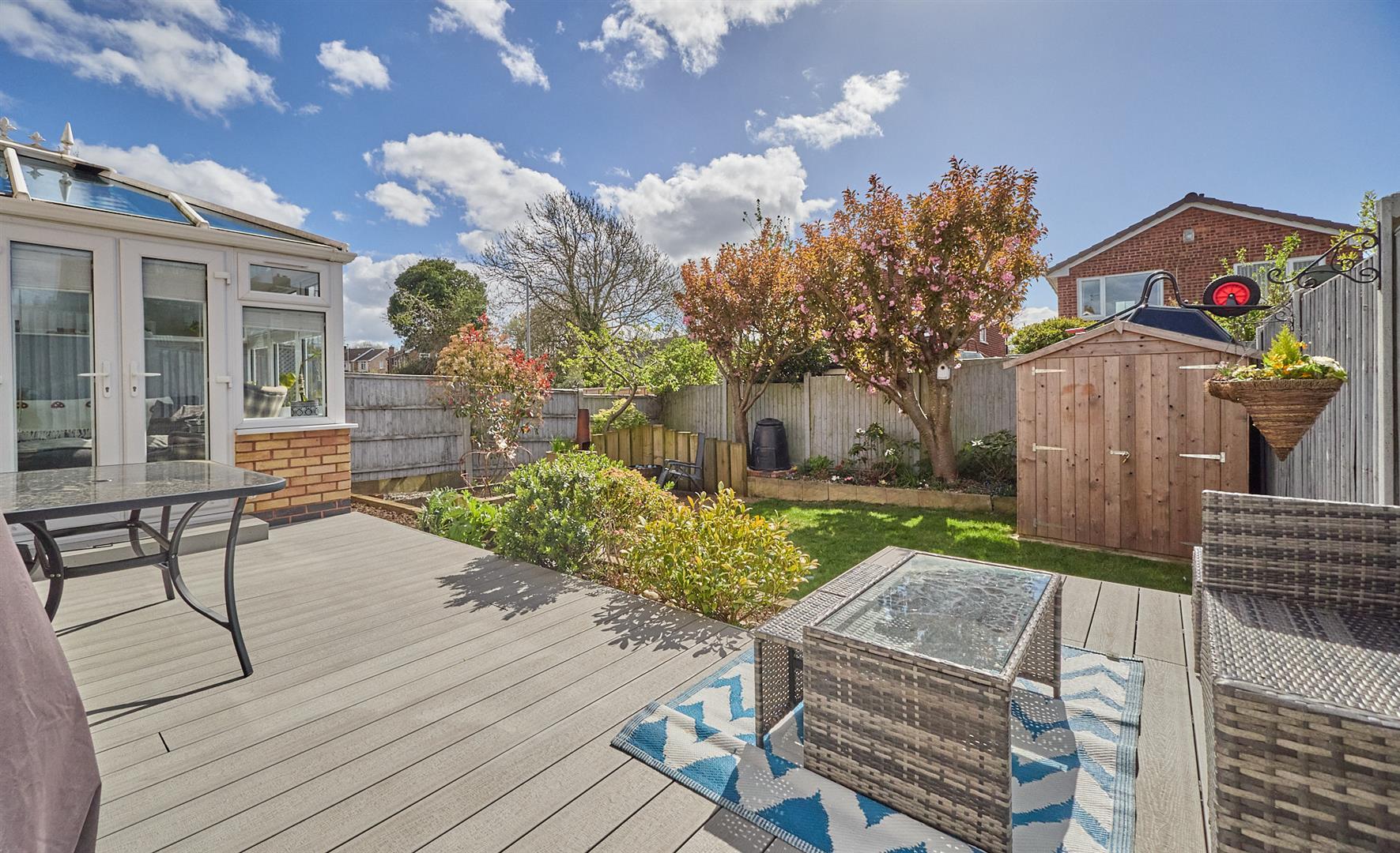The property is nicely situated set well back from the road in a cul de sac with a good sized block paved driveway to front with surrounding stoned boarders and leading to the single garage (4.72m x 2.64m). With lighting, power, radiator and electric roller door to front. Access down the right hand side of the property leads to the enclosed rear garden with a composite decking adjacent to the rear of the property. Steps lead down to the remainder of the garden which is principally laid to lawn with surrounding boarders with mature trees. Timber shed. Outside tap, power point and lighting.
