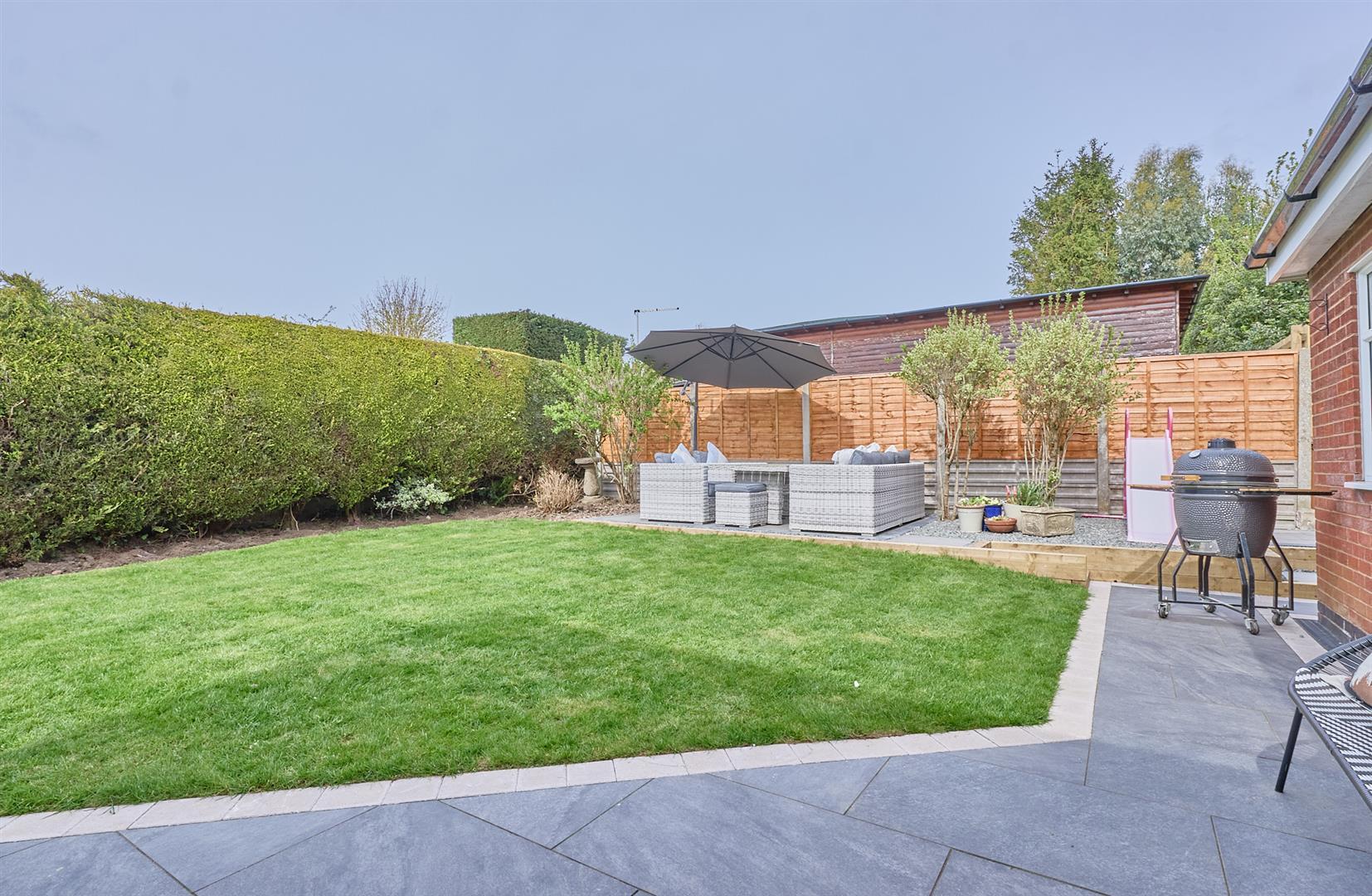 The property is set well back from the road with a tarmacadam driveway leading to a single garage with up and over door to front, the rest of the frontage is a decorative stone driveway with a porcelain slabbed patio leading to the front door with outside lighting. The property to rear has a porcelain slabbed patio adjacent to the rear of the house which wraps around the whole of the rear as a path, there is a further porcelain patio to the right hand side of the lawn the garden is predominantly laid to lawn with surrounding fencing and hedging and raised sleeper beds, a pedestrian door to the garage and timber side gate for access to the front, a side tap and lighting and there is also an electric charger on the drive.