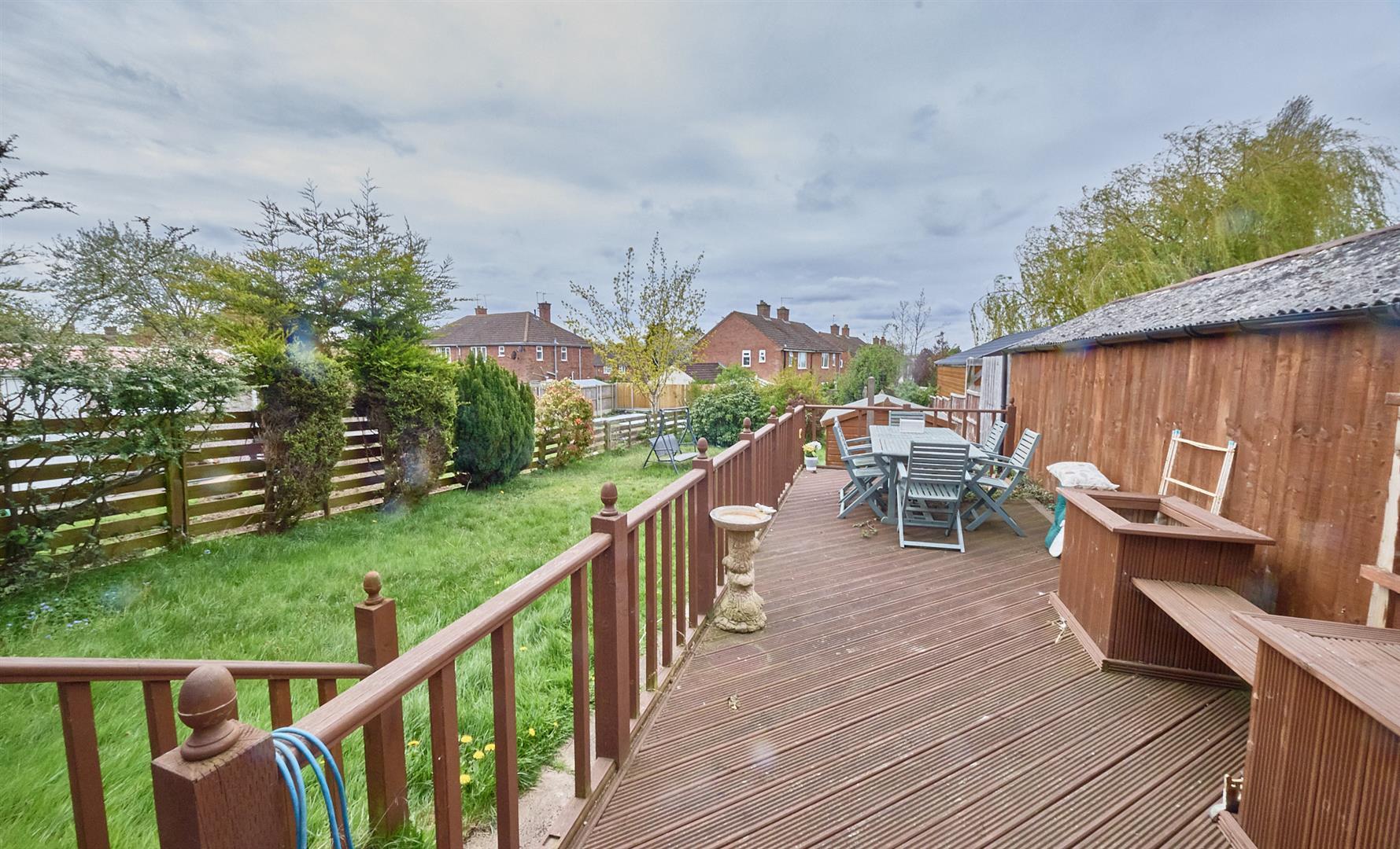 The property is set back from the road having a full width block paved and slabbed driveway to front, the driveway leads down the side of the property to the large fenced and enclosed rear garden. There is a deep timber decking patio adjacent to the rear of the property with surrounding balustrades, there is also an outside tap, beyond which the garden is principally laid to lawn and the garden has a sunny aspect.