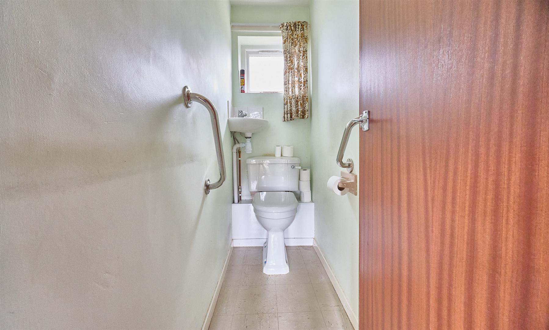 With white suite consisting panelled bath, mixer tap and shower attachment above, vanity sink unit with white double cupboard beneath, contrasting tiled surrounds, shaver point and shaver light. Chrome heated towel rail. Door to the airing cupboard housing the lagged copper cylinder immersion heater for supplementary and domestic hot water.