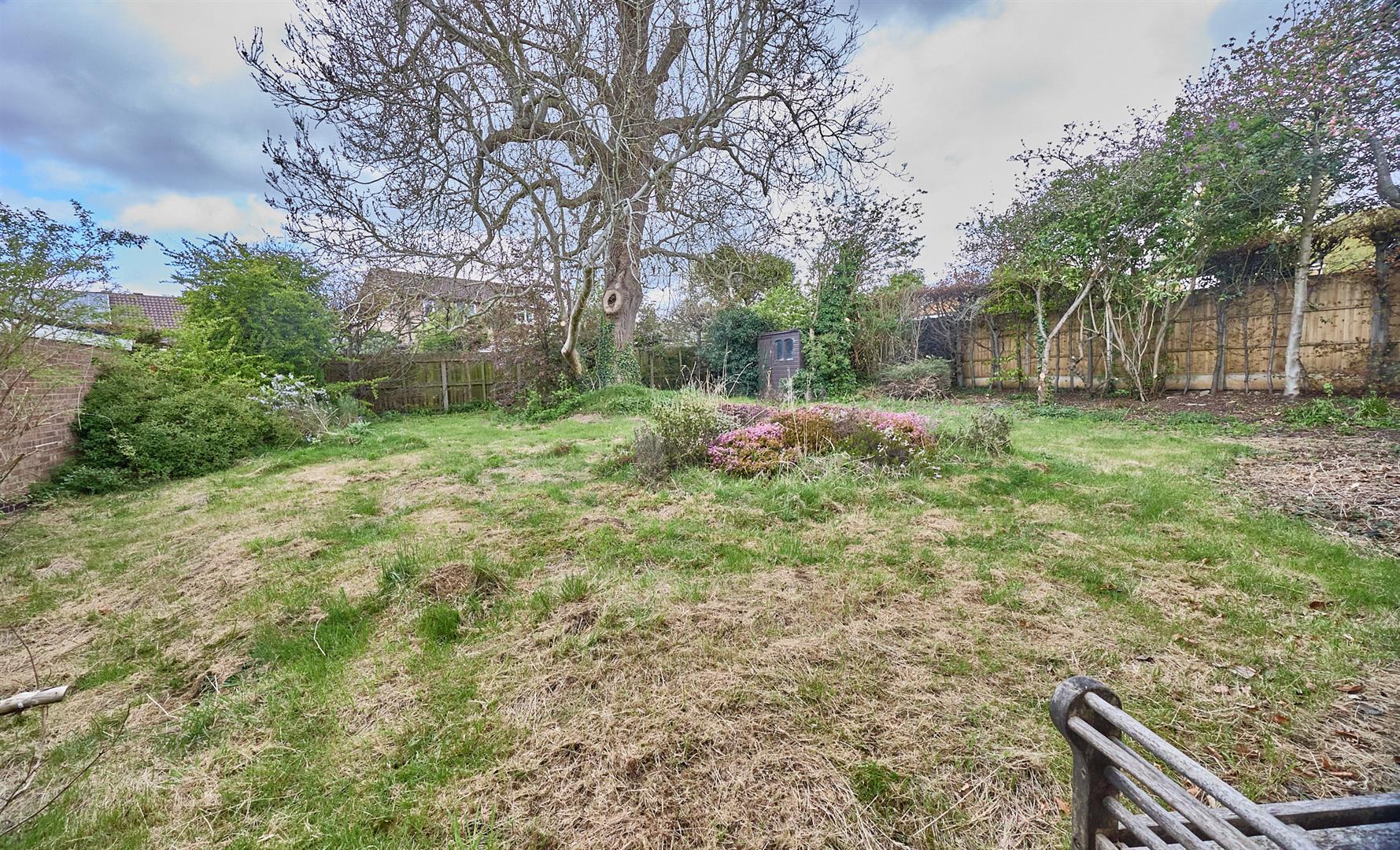 The property is nicely situated at the head of a cul de sac on a large corner plot set well back from the road screened behind mature hedging, the front and side gardens are principally laid to lawn, a tarmacadam driveway leads to two single brick built garages measuring 2.51m x 4.95m with electric up and over door to front, there is light and power and keypad for burglar alarm system. A communicating door leads to the other single garage L shaped measuring 4.72m x 3.96m with up and over door to front, light and power with a side pedestrian door and window. A timber gate and brick retaining wall lead down the right hand side of the property where there is a brick built garden store with light and power, double timber doors to front beyond which there is a pathway leading to the large fenced and enclosed rear garden which has a full width slabbed patio adjacent to the rear of the property beyond which the garden is principally laid to lawn. There is also a timber shed, to the left hand side of the property there is a brick retaining wall and timber gate offer a wide access down the side of the property to the rear garden.