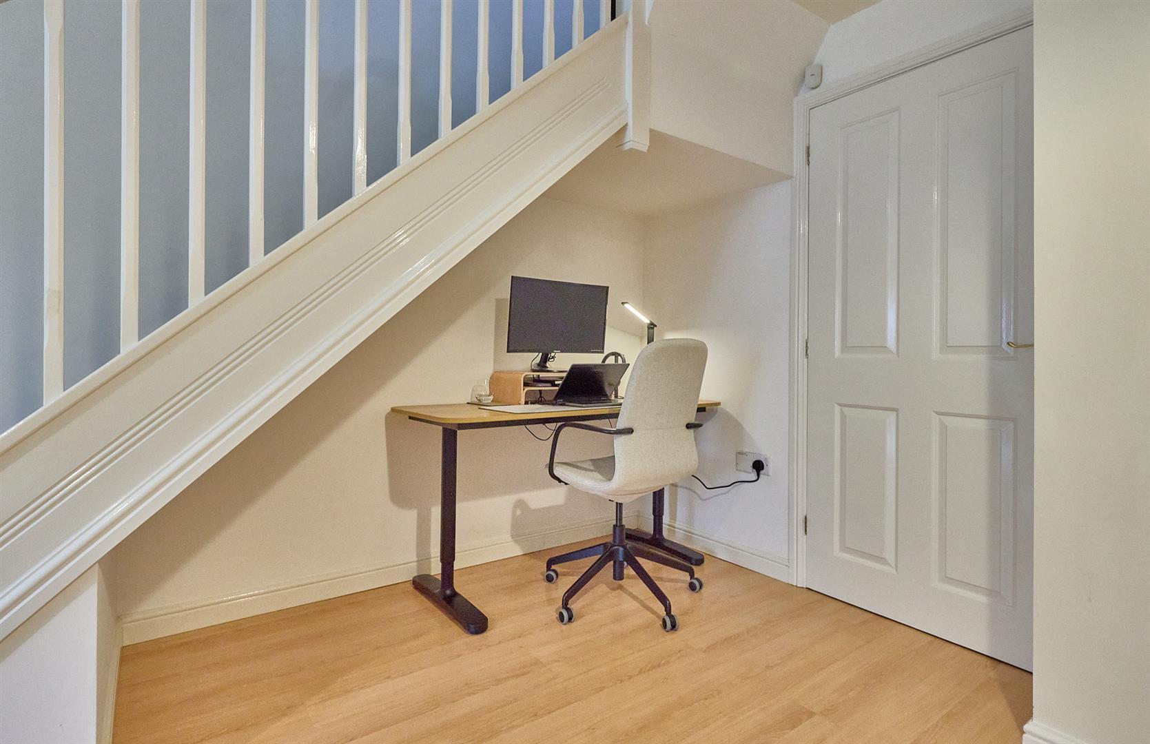 With wood effect laminate flooring which runs through the whole downstairs of the property, wall mounted intruder alarm key pad, wired in smoke alarm, door to