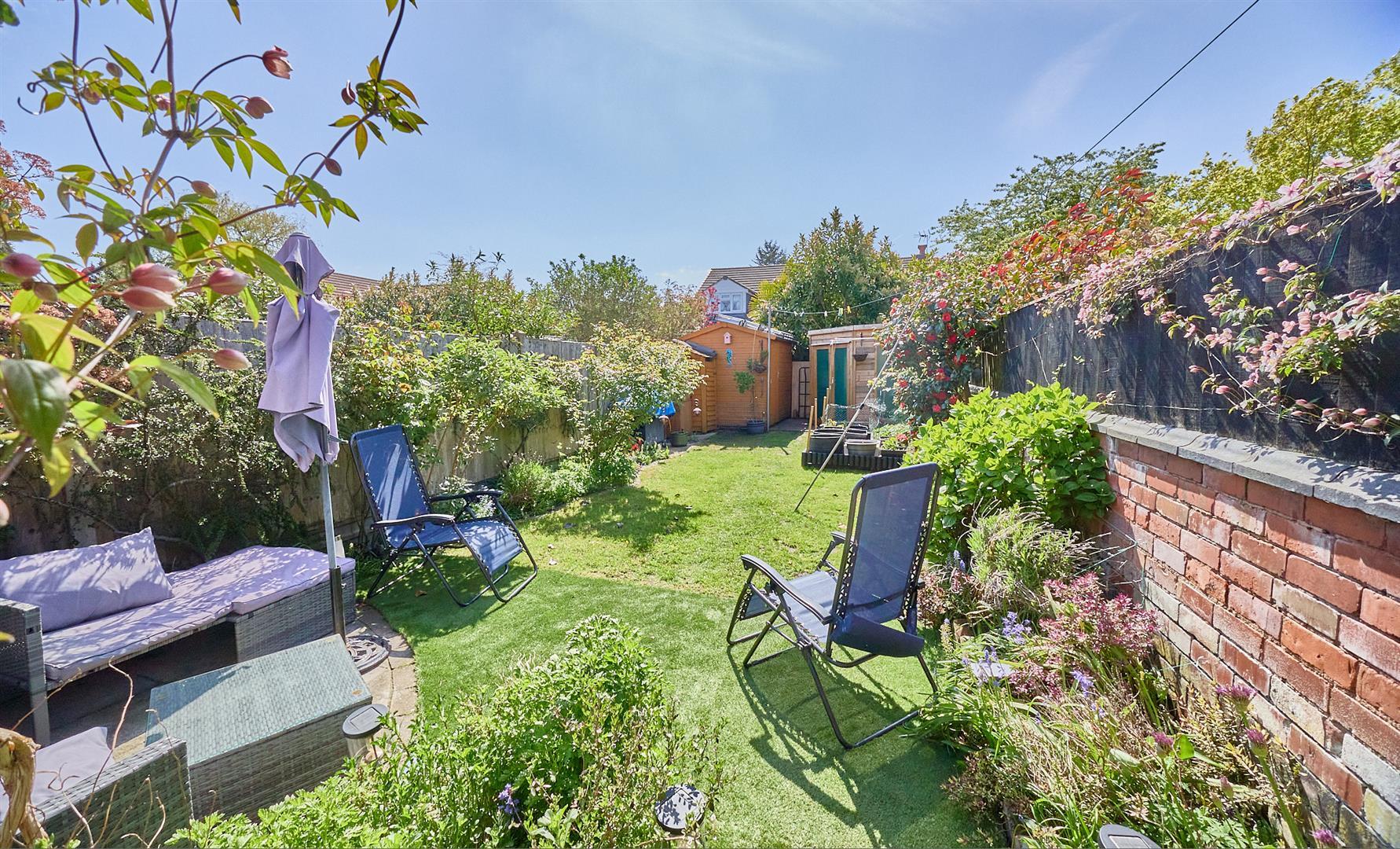 The property is set back from the road screened behind a mature hedge with a full width block paved front forecourt, a timber gate and slabbed pathway leads down the side of the property to the good sized rear garden which is enclosed by panelled fencing and brick retaining wall. Adjacent to the rear of the house is a slabbed patio with surrounding beds beyond which the garden is principally laid to lawn with well stocked beds and borders. To the top of the garden is a timber shed and summer house both with light and power, there is also a wood store and the garden has a tap and a sunny aspect.