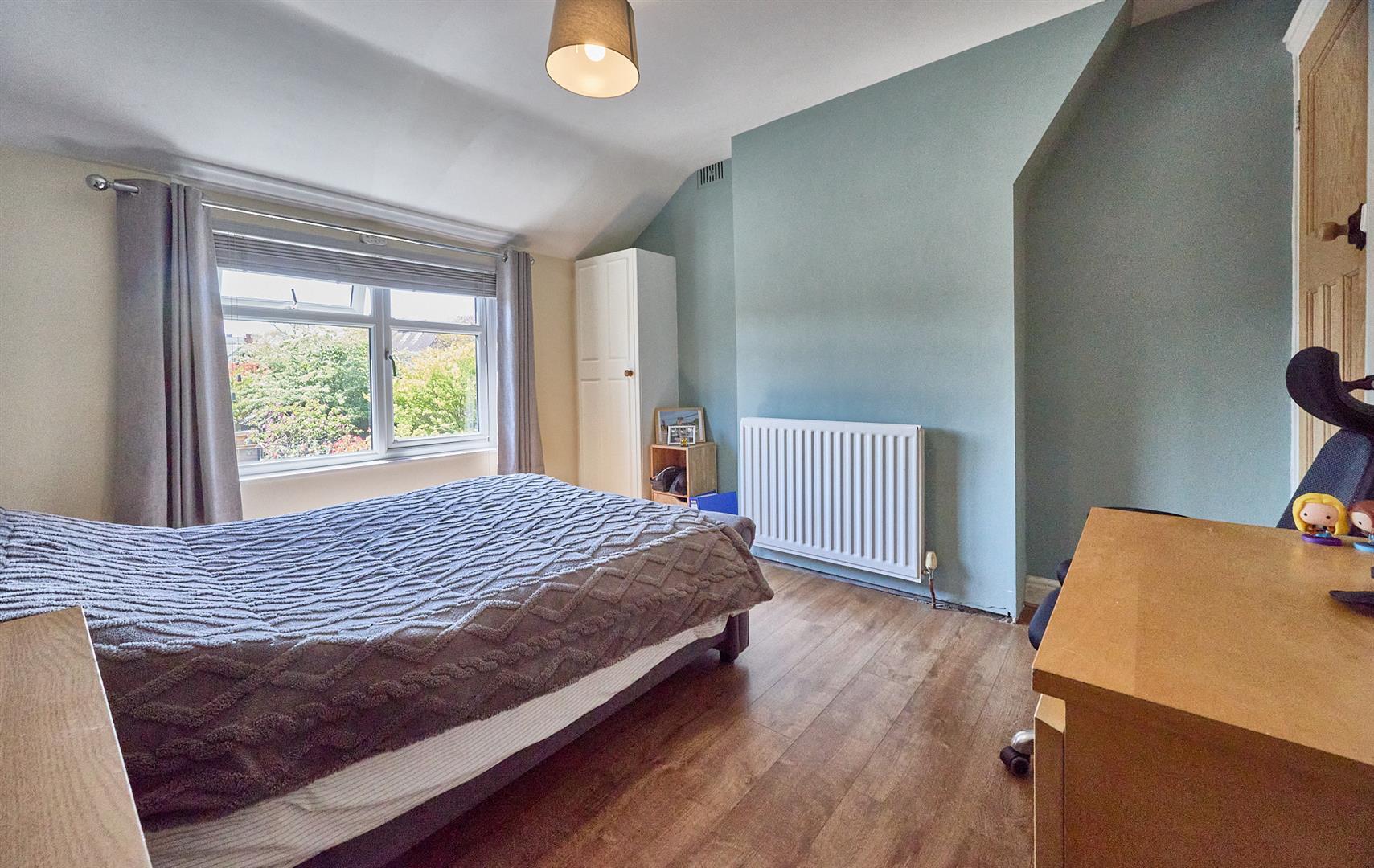 With built in single wardrobe, further airing cupboard housing the Valliant gas combination boiler for central heating and domestic hot water with wireless digital programmer. Woodgrain laminate wood strip flooring, radiator.